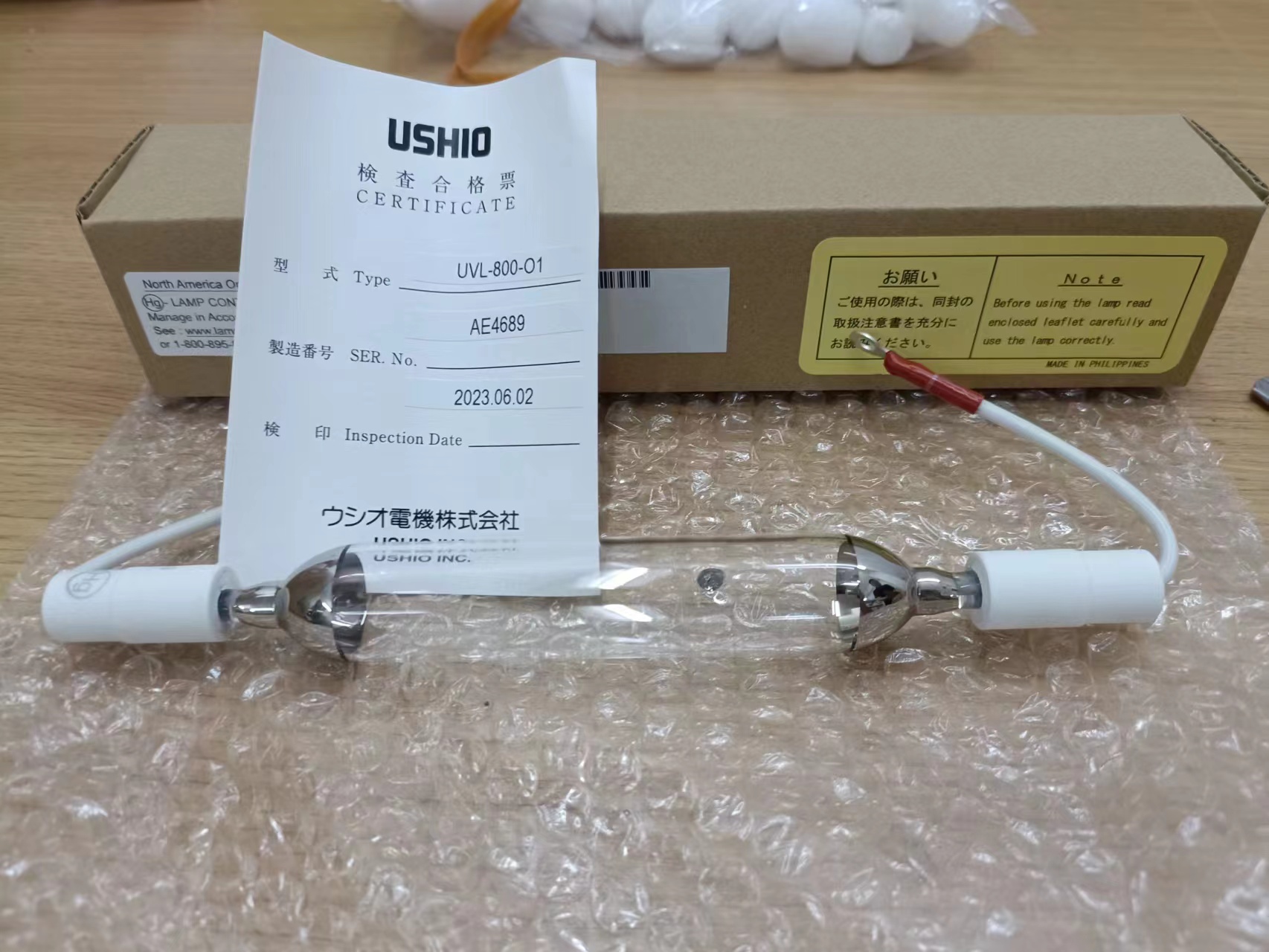 玉崎库存!USHIO紫外线灯管UVL-6000-O牛尾