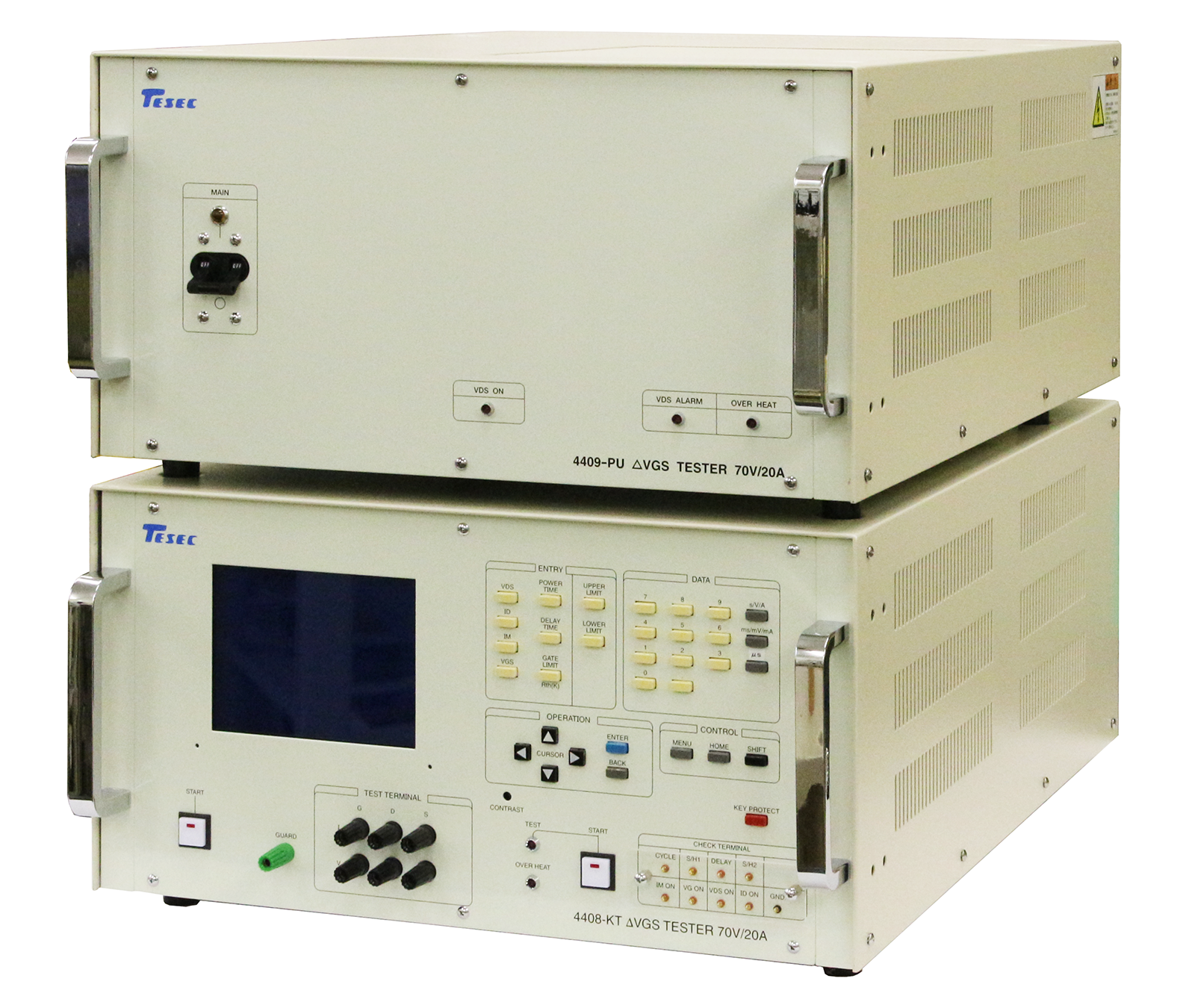 玉崎-泰赛TESEC热阻测试机4408-KT多重测试功能4408-KT4408-KT 设计用于测量 GaN HEMT随 VGS 的温度变化 (ΔVGS) 的瞬态热阻特性。测量值 VGS1 和 ΔVGS 值显示在前面板显示屏上。特点・测量结果显示在前面板显示屏上・可以显示升高的温度 ΔT 作为计算结果・热阻Rth可显示为计算结果・多重测试功能・60 可存储测试程序・接触检查/开路,短路检查・振荡检测
