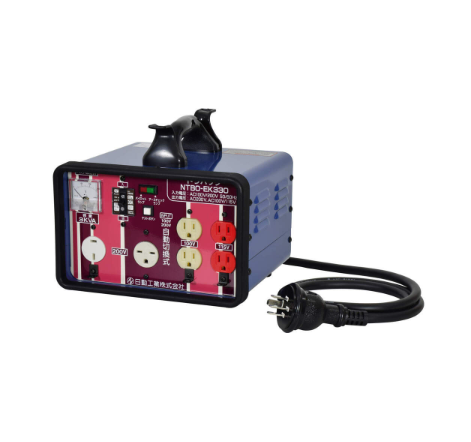 玉崎售 NICHIDO日动工业NTBO-EK330 升压、降压自由型变压器在供电设备为100V/200V的场所立即可用!无论是室内使用还是输入电源为100V/200V,都可以根据所使用的设备提供合适的电压。消除电压下降!防止电压下降导致工具烧坏和功能恶化!室内使用,额定电压AC100V,输入电压增加15%或25%。立即消除电压降并发挥电动工具 100% 的能力。使用电线的次数越多,电线越长,电压就