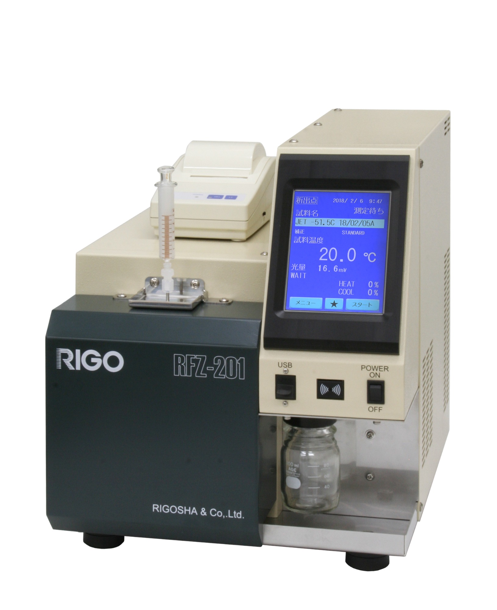 玉崎-RIGO离合社 RFZ-201自动沉淀点测试仪自动沉淀点测试仪配备自由活塞和斯特林冷却器。FPSC是一种环保型冷却系统,完全不含碳氟化合物,不需要制冷剂或碳氟化合物气体。使用这一设备,仅需 5 至 10 分钟即可测量高达 -70℃ 的降水点。只需将5mL样品注入池中,池就会同时被清洗,只需按开始即可。特长■内置FPSC,不使用氟氯化碳气体,环境友好的清洁装置。测量时间仅为5~十分钟。单元清洗