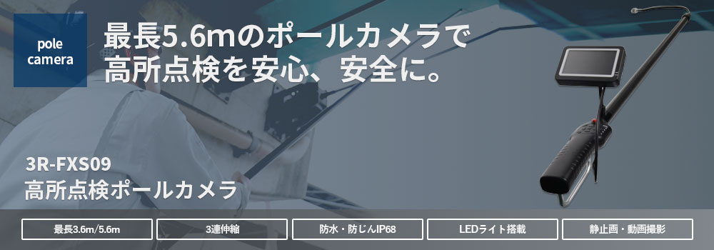 玉崎供应现货3R-FXS09 / 3R-FXS09-56 高处巡检摄像机(立杆摄像机)3R-FXS09 / 3R-FXS09-56高处巡检摄像机(立杆摄像机)这款高位检查摄像机的最大总长度约为 3.6m/5.6m,可代替您在监视器上显示图像,让您无需担心或紧张即可进行检查。 5.6m 杆式摄像机可以检查最远 6m 的物体。采用尖端可自由弯曲的柔性管,让您能够精确定位您想要查看的区域。主要规格产品